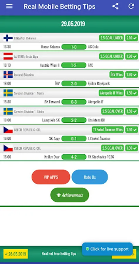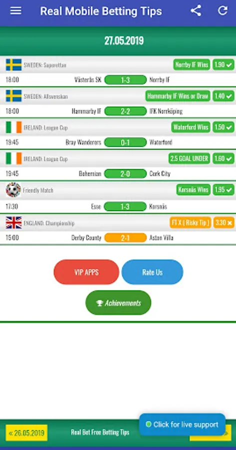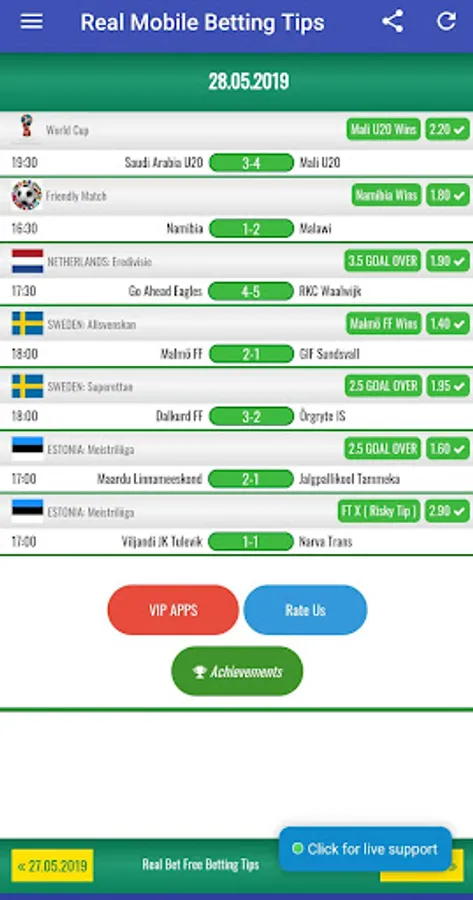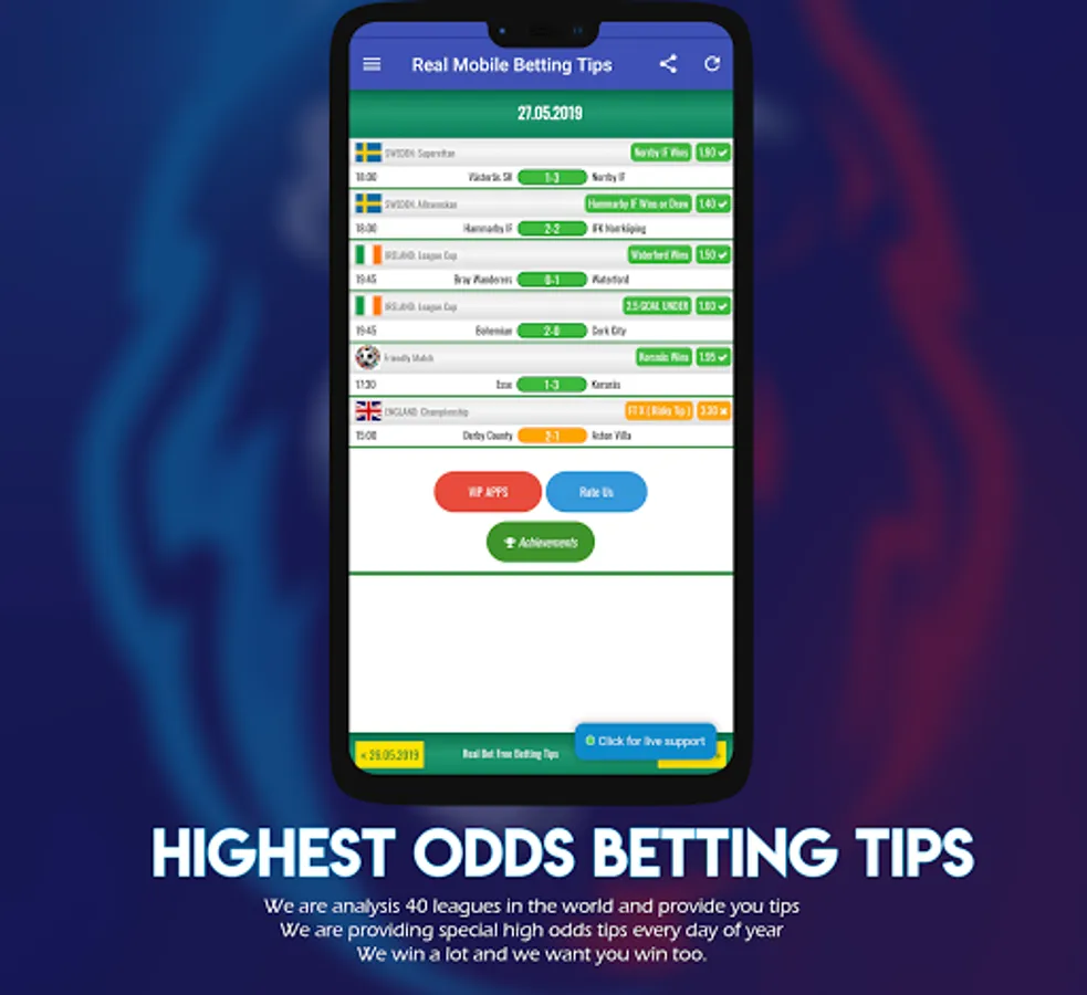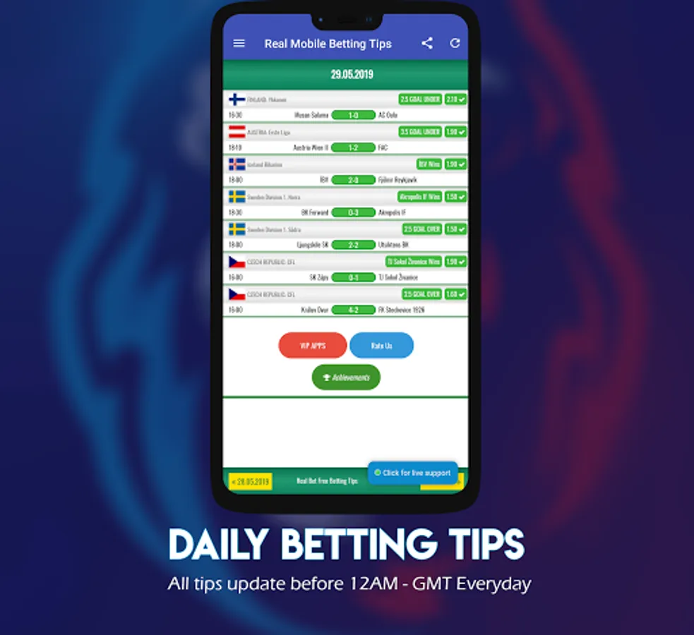 If you wish to have high odds, you can purchase one time our VIP betting tips application and use it life time. VIP betting tips application provides sure betting tips and wins always.