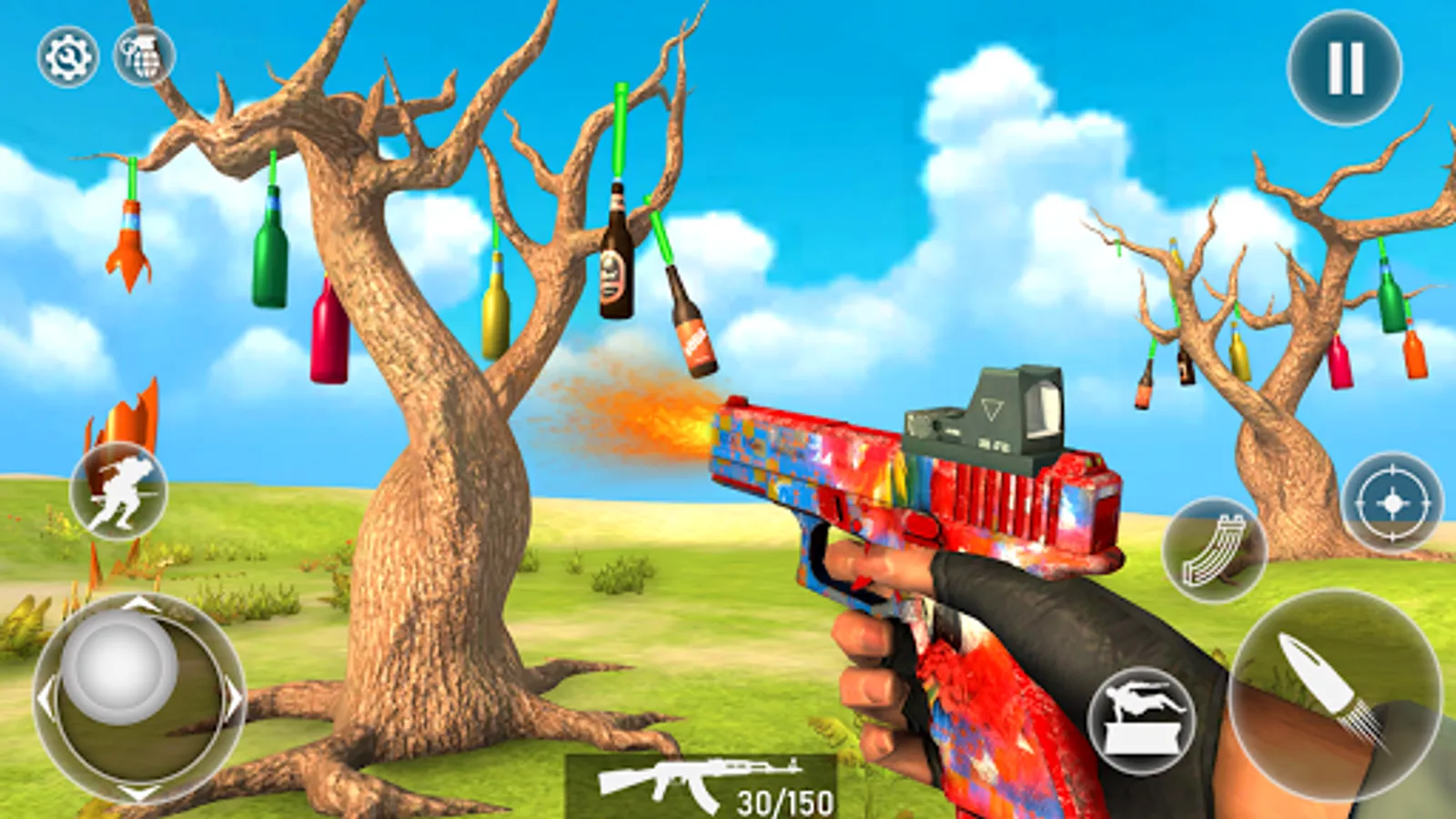 🔫 Break colorful bottles with real army training gun.
