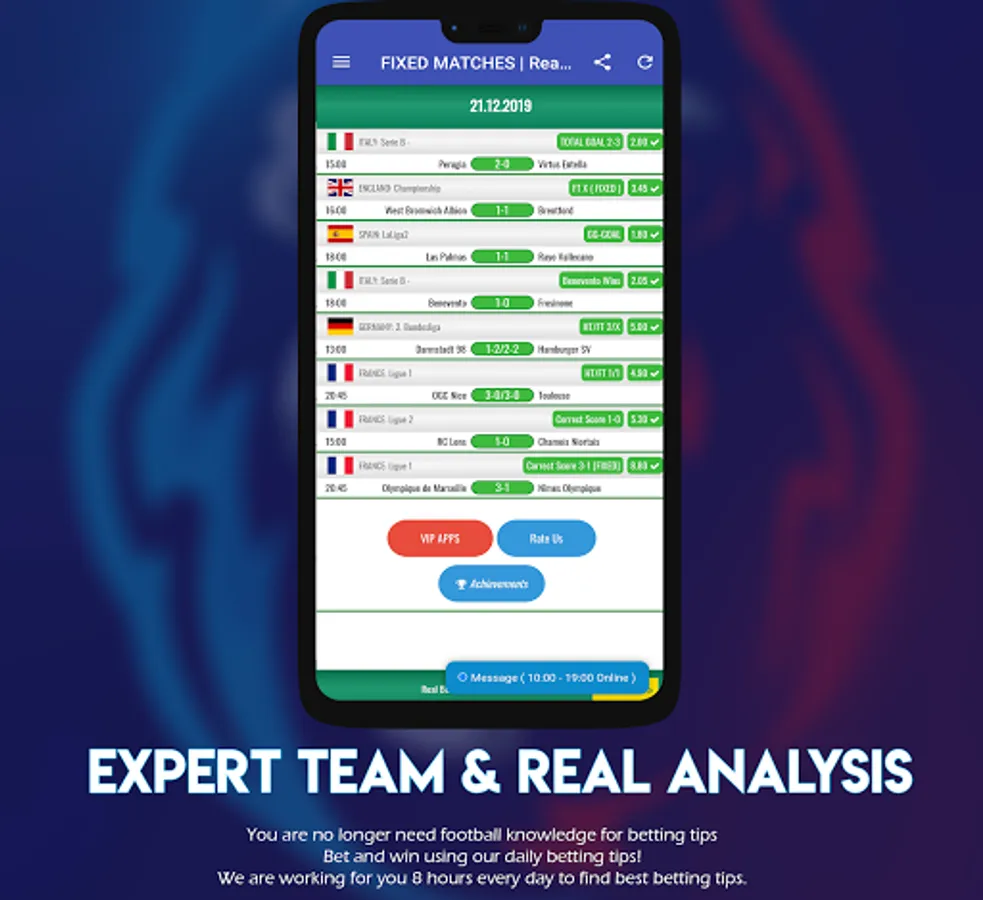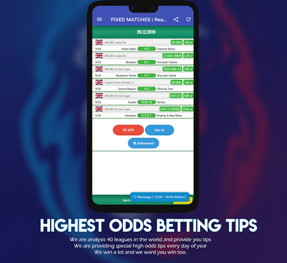 In our Real Bet FIXED MATCHES applications, there are only football betting tips. We are analysis 40 leagues in the world and provide you tips. We are providing special high odds tips every day of year. We win a lot and we want you win too.