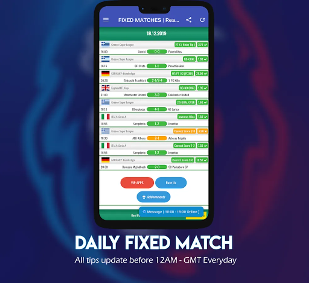 If you wish to have high odds, you can purchase one time our Real Bet FIXED MATCHES application and use it life time. Real Bet FIXED MATCHES application provides sure betting tips and wins always.