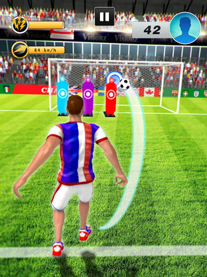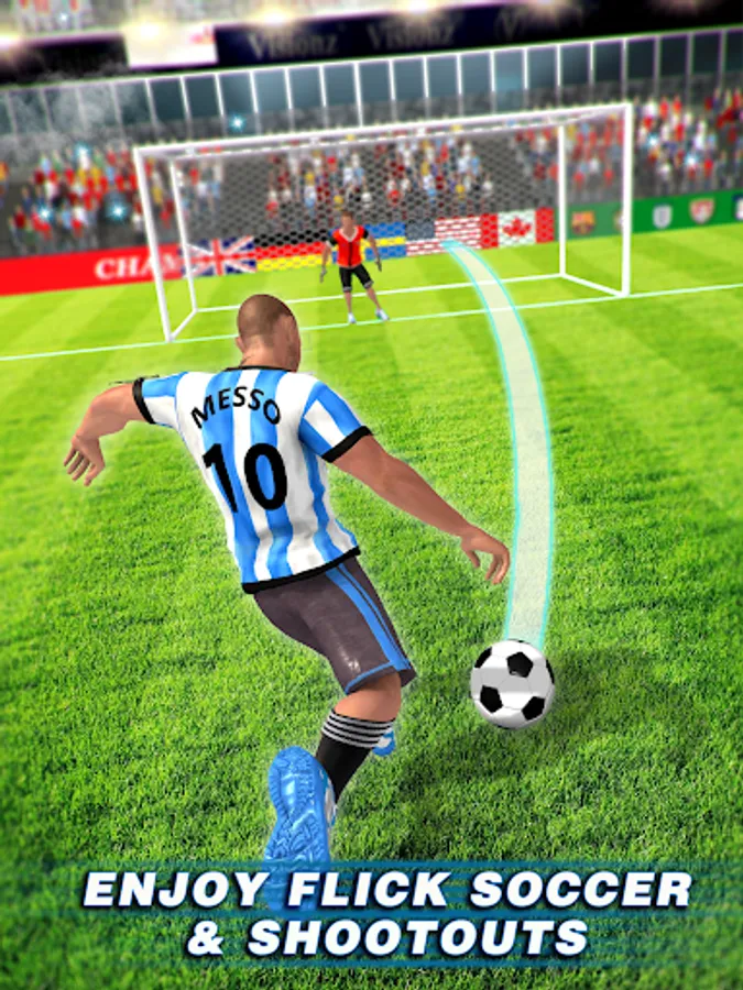 Real football soccer strike 3D is all about kicking the soccer ball into the goal, and being a high-score football hero. Experience football like never before, in this easy-to-play sports game, enjoy a casual gameplay experience. Get ready to play the amazing football game and be a real soccer hero in a free-kick-strike free-ball game. As a mobile soccer star, enjoy the real kick physics and legendary football experience. This is your chance to be the best football striker player while playing this free-kick soccer strike 3D game. Kick, strike and score using your hero soccer player. Use your feet and striker power to score goals. Strike hard against the best fútbol players of the dream league. Join the top leagues and be a part of the champion football leagues. Win the finest football matches and soccer championships to become the best soccer hero and real football striker. Play the ultimate legend-free football game like a real sports champion or play as a real legend strike player in this best fútbol soccer championship game. Wait for the referee’s whistle for the kick-off game.
