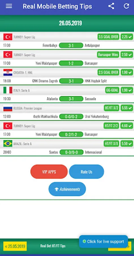 If you wish to have high odds, you can purchase one time our Real Bet VIP HT/FT Betting Tips application and use it life time. Real Bet VIP HT/FT Betting Tips application provides sure betting tips and wins always.