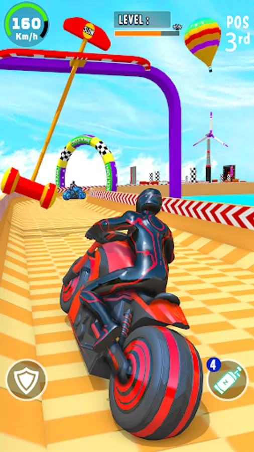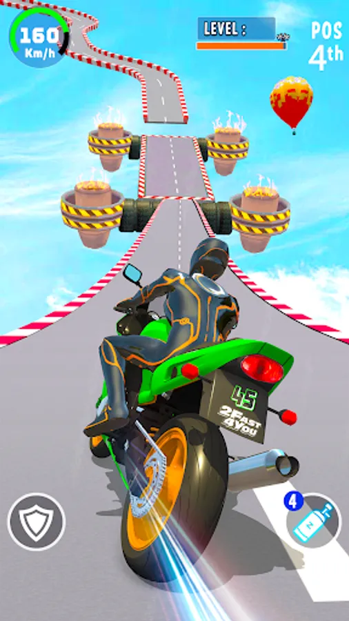 Choose your favorite motorcycle bike stunts, motor stunts, superhero, and control the speed behind your wheel to dive in the extreme fun of ultimate bike stunts on impossible mega ramps impossible tracks.