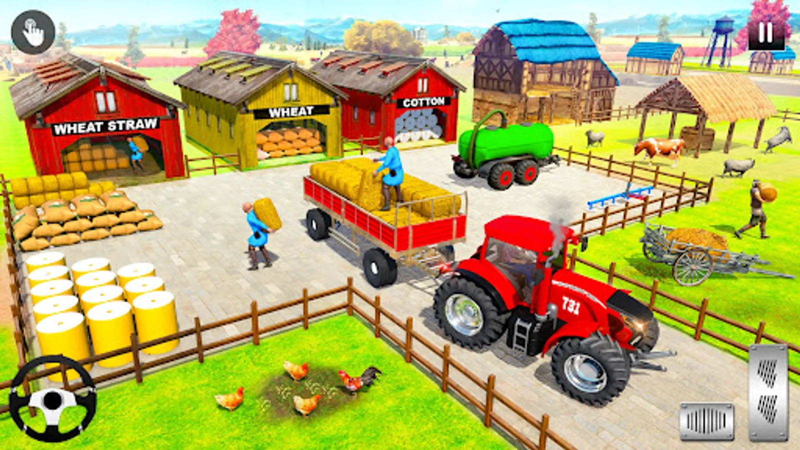 Real tractor Farming - Tractor Driving Sim 2021 allows you to deal with realistic farming job in extraordinary off-road tractor drive simulator 2021. Plant, grow, harvest, and sell two different crops: Wheat & Corn, bring up cows and sheep, and transport animals at your Tractor Trolley Driving Simulator 3d farming game 2021. Enjoy new Cargo tractor trolley simulator game to expand your farm land. Take direct control of real 4x4 chained tractor simulator to help and manage your farming and cargo transport and in growing crops in Modern farming simulation game.