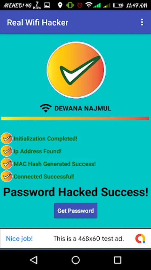Real wifi hacker is not a real working hacking tool. Its just a prank app!