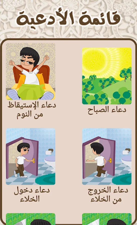 Daily supplications for children: It is an enjoyable application for children that contains the daily supplications of the Muslim child written and heard ,,, The application aims to teach the Muslim child the most important supplications that he may need in his daily life ,,, and this application comes with images that explain to the child such as the school book in addition to a text The supplication is written, and the most important thing in the application is that the child can hear the supplication in a clear and beautiful voice by clicking on the voice button above the written supplication ,,, We hope that the application receives your admiration. Do not forget us from the supplication and from the evaluation of the program with 5 stars that you like