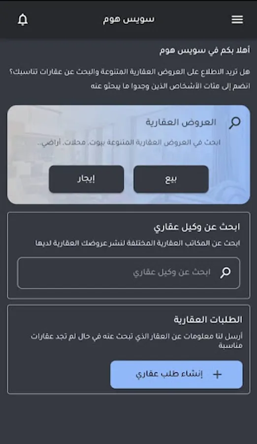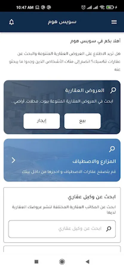 Swiss Home is a real estate application that covers real estate in Damascus and its countryside .. The application allows agents to advertise their properties and ensures that you get the largest offer for the housing market in Syria than anywhere else as it covers very large areas of all properties offered for sale and rent ... Swiss Home can help you To conduct research on your property including valuable information on available property prices and real estate market information.