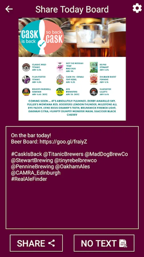 This service comes with a free web based beer board plus quick and easy sharing tools to promote your beers and ciders.