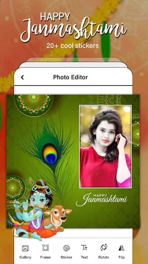 ✨ Stunning Janmashtami Frames: Choose from a wide range of beautifully designed Janmashtami-themed frames that will add a spiritual touch to your photos.
