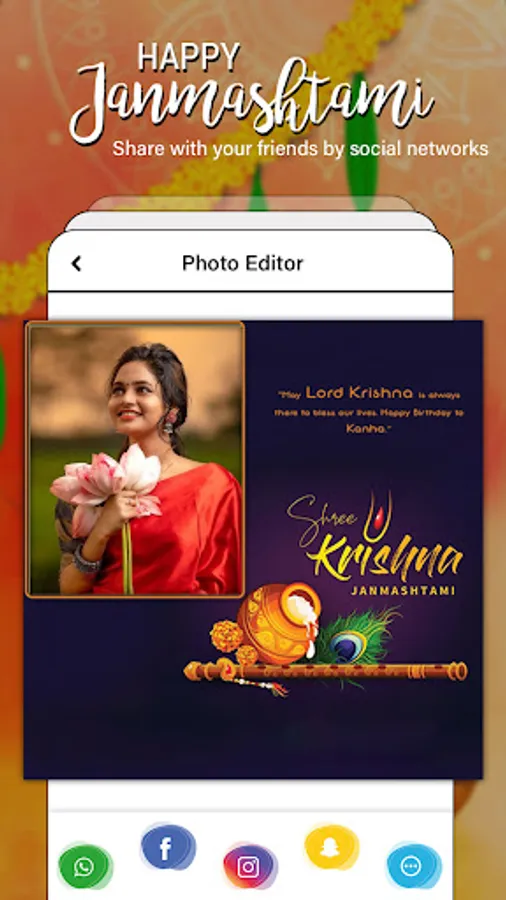 ✨ Share with Friends and Family: Share your Janmashtami creations with your loved ones via social media, email, or messaging apps directly from the app.