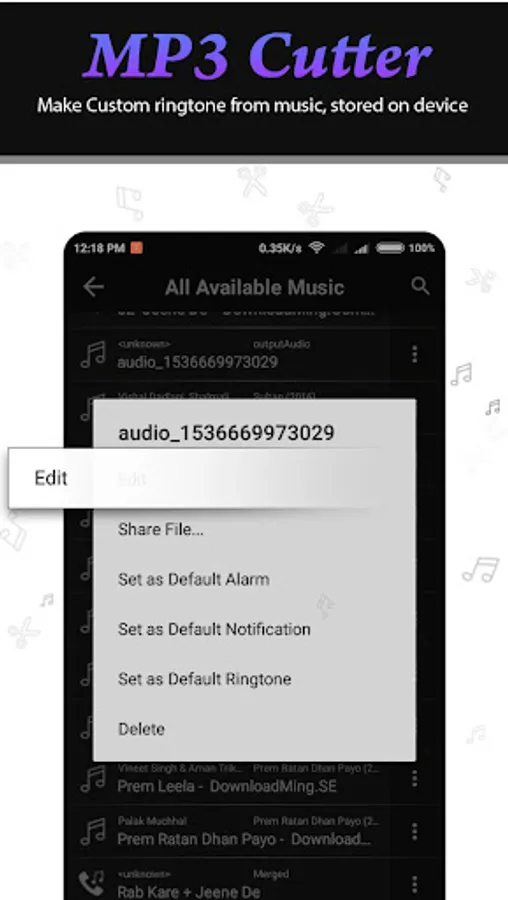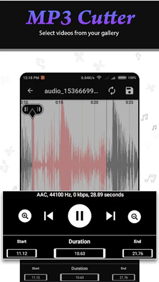Make your own MP3 ringtones fast and easy with this app. You can even record a live audio and this MP3 editor can edit and trim the best parts from it for free. Supports MP3, WAV, AAC, AMR and most other music formats. This app is also a music editor/alarm tone maker/ ringtone cutter and notification tone creator.