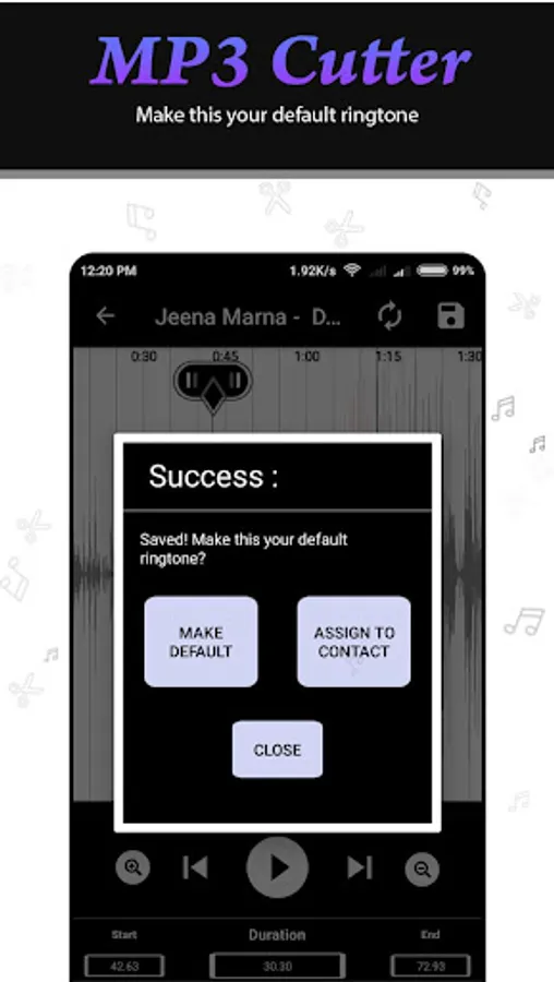 - Set the new clip as default ringtone or assign ringtone to contacts, using this ringtone editor.