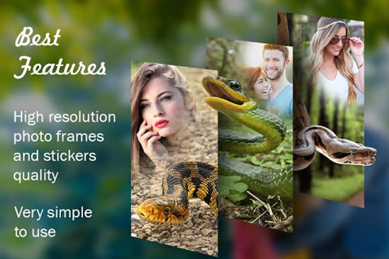 Snake Photo Frames is a powerful photo editor for you to create awesome nature looks photos, nature backgrounds, text with frames in Snake Photo Frames.