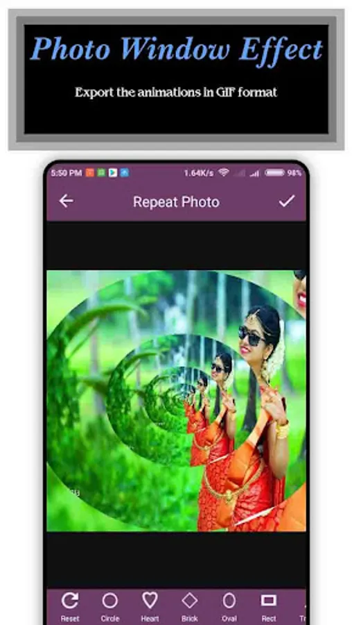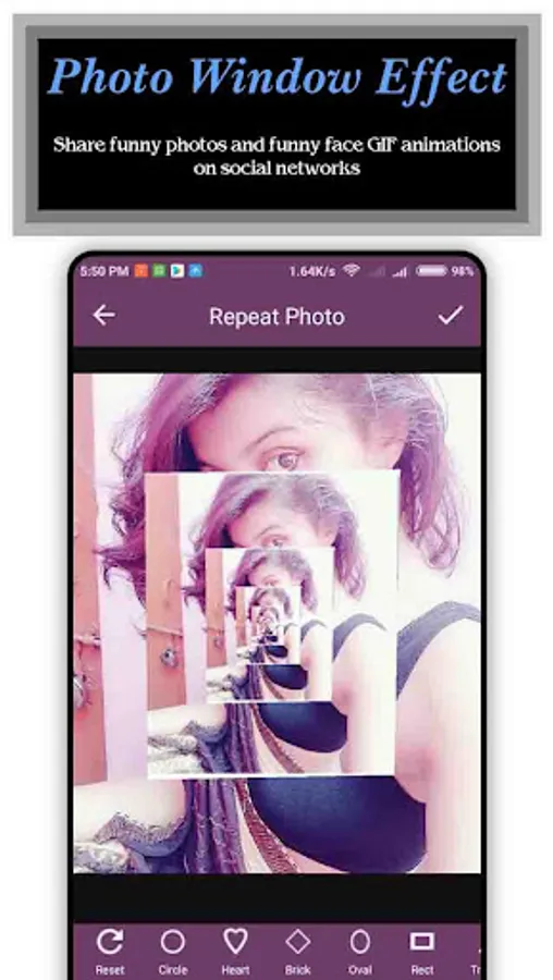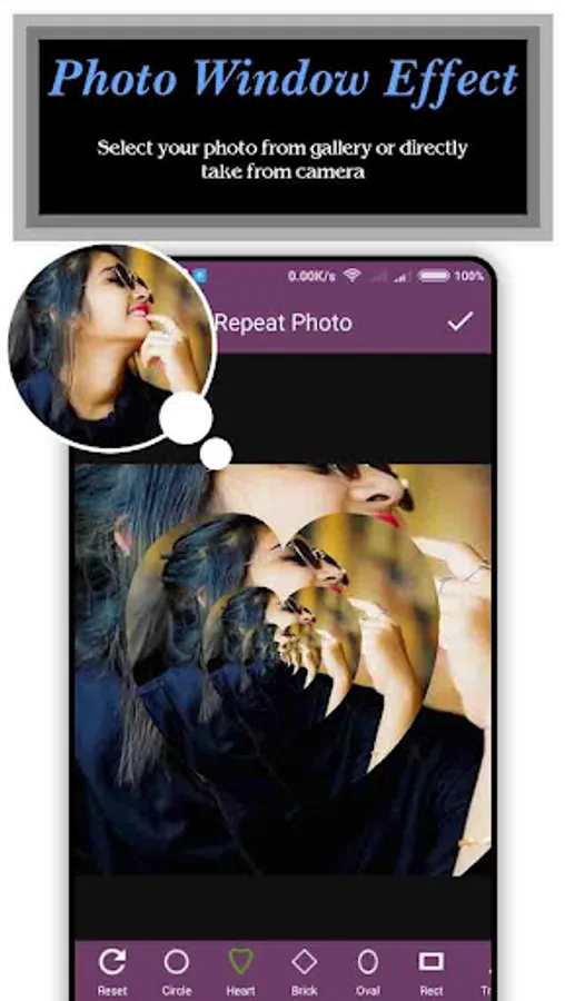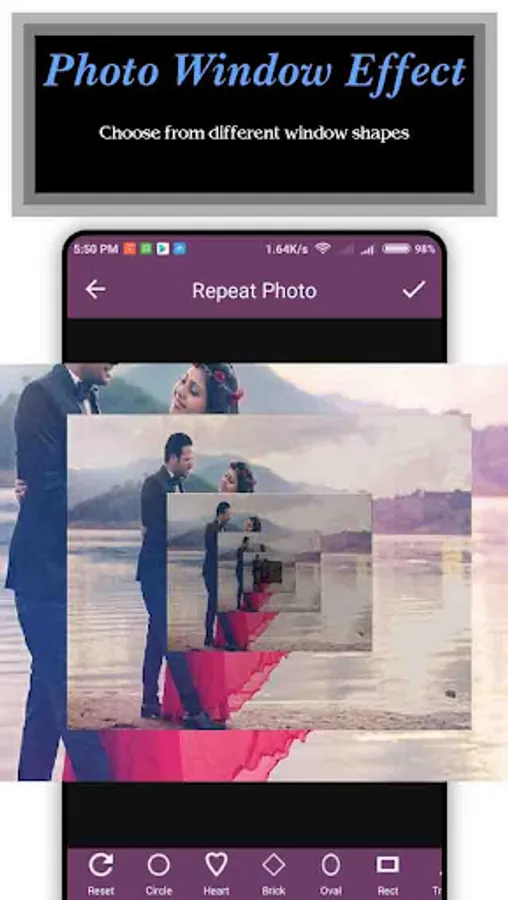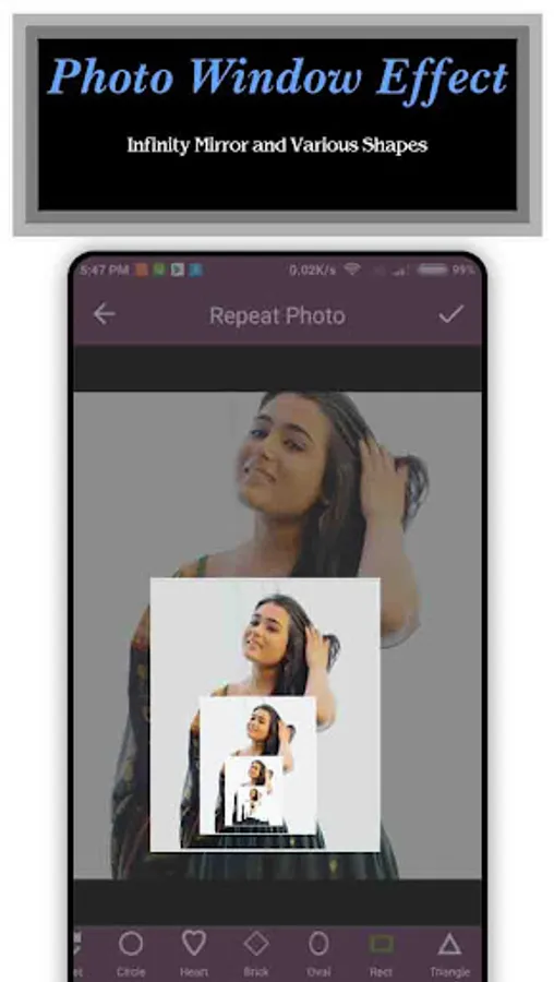 Multiple Shapes Repeat Photo - Photo Window Effect app allows you to create different types of reflecting mirror effects in your photos.