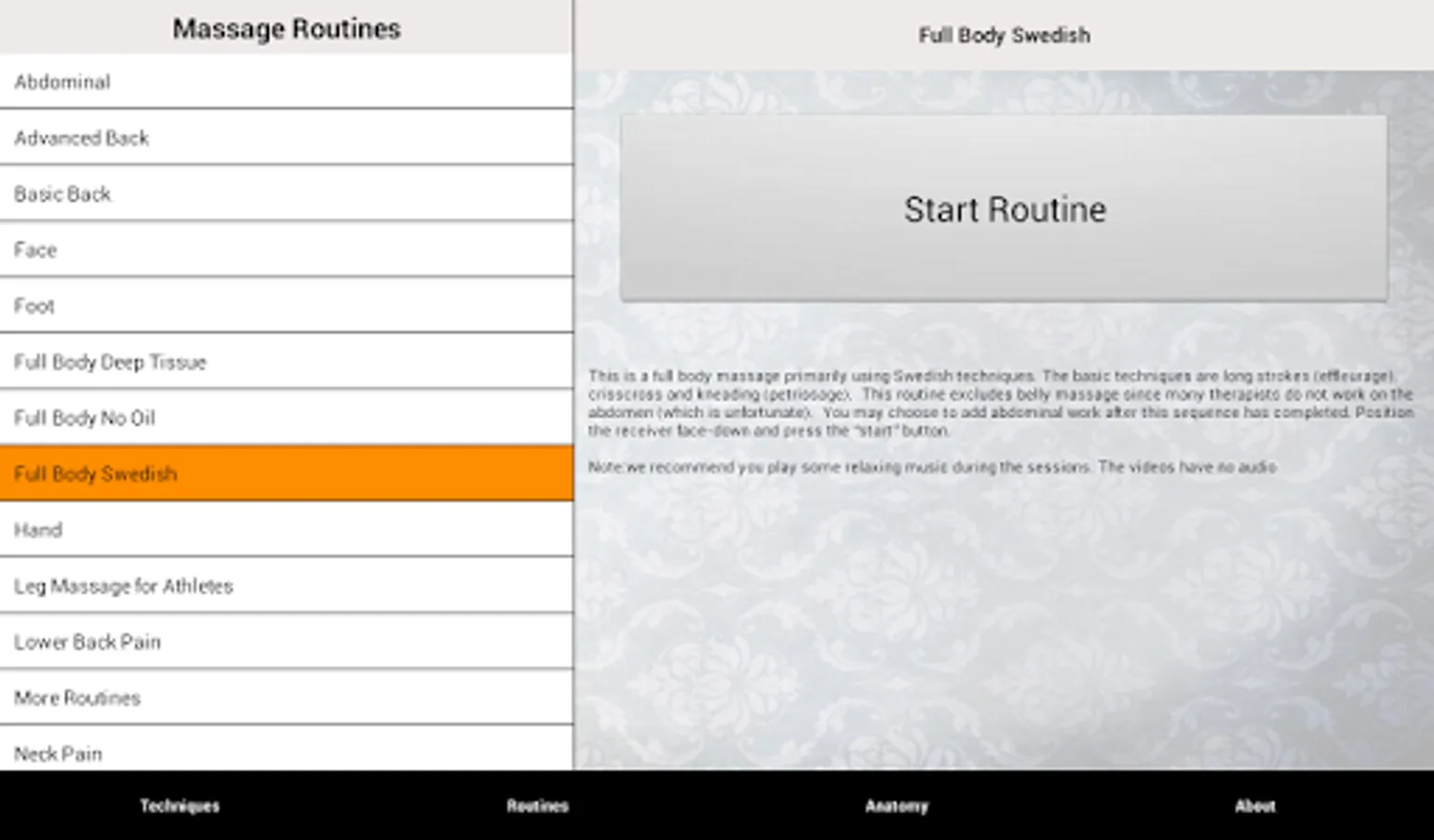 Just follow along to give a great massage. The anatomy section features a 3D model of the bones and superficial muscles. If you want to learn how to massage like a pro, this is the app. Created by Real Bodywork, the largest producer of massage training dvds.