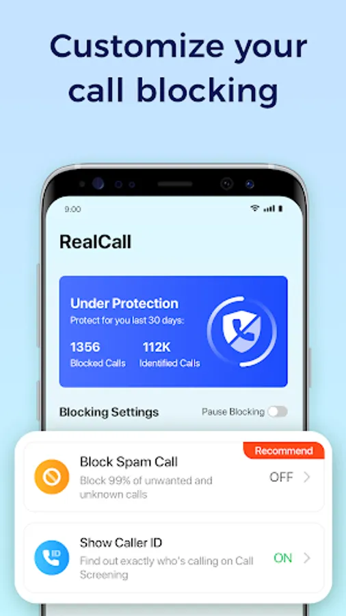 As the most popular free spam call blocker, RealCall employs AI and machine learning solutions to prevent you from being targeted by scammers. It has analyzed millions of callers and stopped 99% of spam calls for its users.