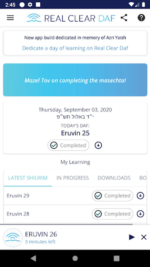 * Easily play/download Real Clear Daf's Daf Yomi audio shiurim. The shiur is given in English.