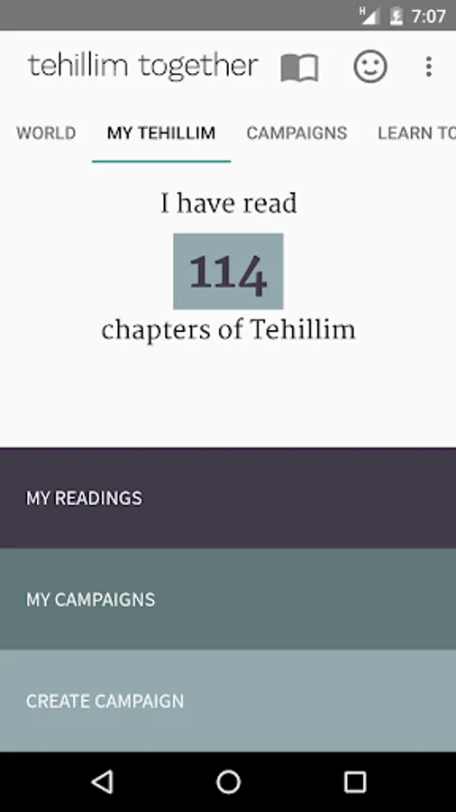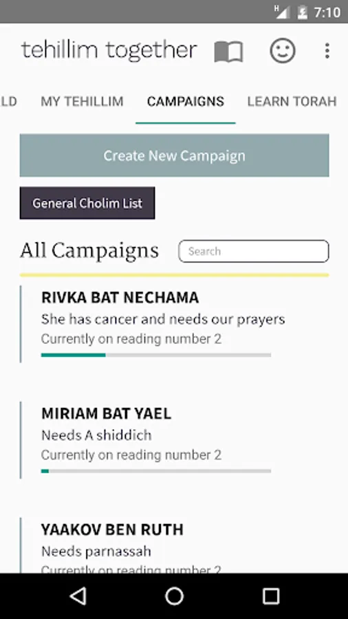 Instantly create and share Tehillim campaigns, then complete your Tehillim from the stunning Sefer Tehillim included in the app.
