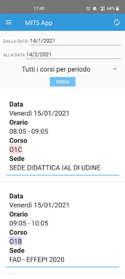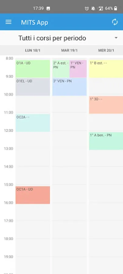 The application autonomously manages the calendars of training courses provided by training bodies. It allows teachers and students of courses to view the calendar of their training activities in real time.