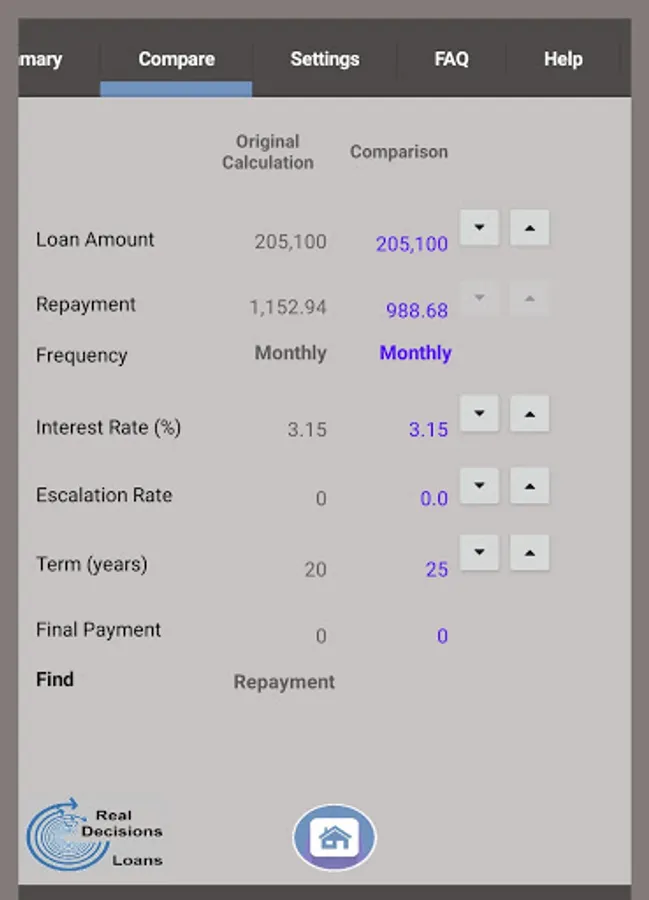 Use the fast-input options to ‘flex’ your loan – we’ve added some very useful up/down arrow buttons so you can quickly create your own ‘what-if’ scenarios. Each one is individually operated, and configurable.