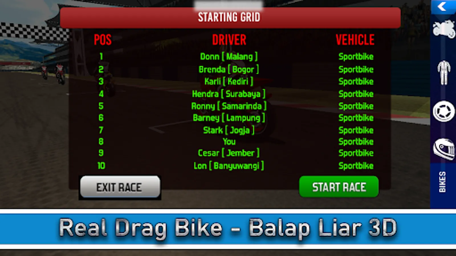 Can be played multiplayer offline. Real Drag Bike Indonesia presents the latest map or circuit.