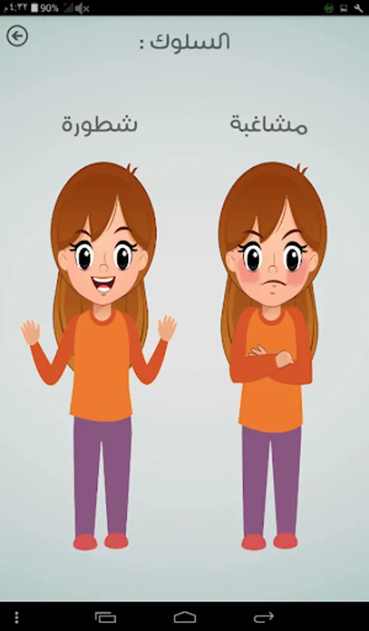 When you open the application, you will have several options, the first of which is choosing the gender, whether it is a boy or a girl, then you will choose the general behavior of it, is it troublesome or sharing.