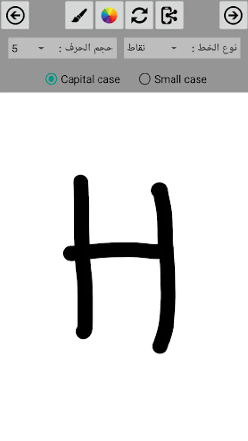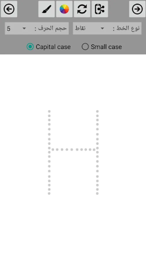 2- Letters: It is a section for teaching the child how to pronounce and write each letter of Arabic and English letters, supports several lines and supports several sizes of the font in order to choose the appropriate font and the appropriate size.