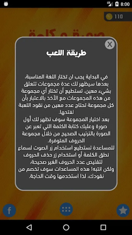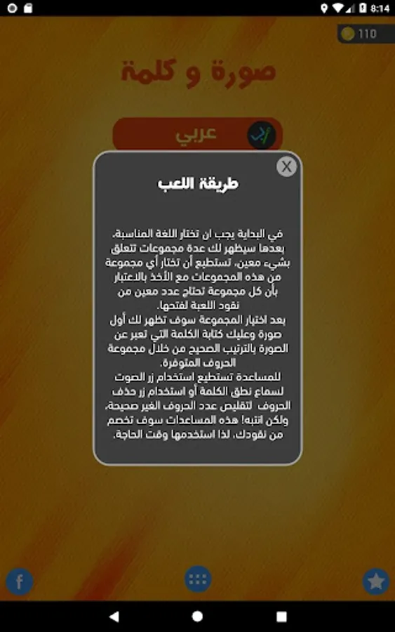 This game has been developed and programmed in the form of scattered letters games, as it shows the image and letters scattered and wrong underneath and the user arranges the correct letters to get the correct word.