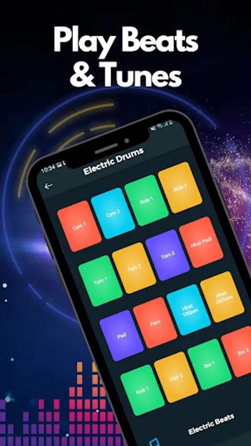 The program simulates a genuine drum set on the screen of your smartphone or tablet. Watch as your fingertips magically transform into drumsticks. All you have to do is tap the drum pads to start hearing the song. Drum Pad - Drum Game, which has a lovely design, is a great music mixer that allows you to create your own drum mixer for your songs with snare drum, hang drum, and many other instruments like a full drum set!
