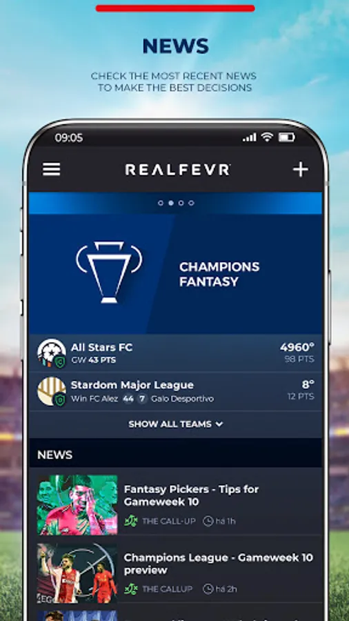 Enjoy the best fantasy football or fantasy soccer experience on mobile with RealFevr! We pride ourselves as the best fantasy sports app where you can compete in national or international competitions. Find the best players for your team, build your dream team, win the championship and prove that you have what it takes to be the best fantasy manager in the world. On RealFevr, there are plenty of chances to play in our Classic and Draft modes where you can manage your teams in real time and challenge your friends. We also have very up to date in-app news to help you develop your strategy.