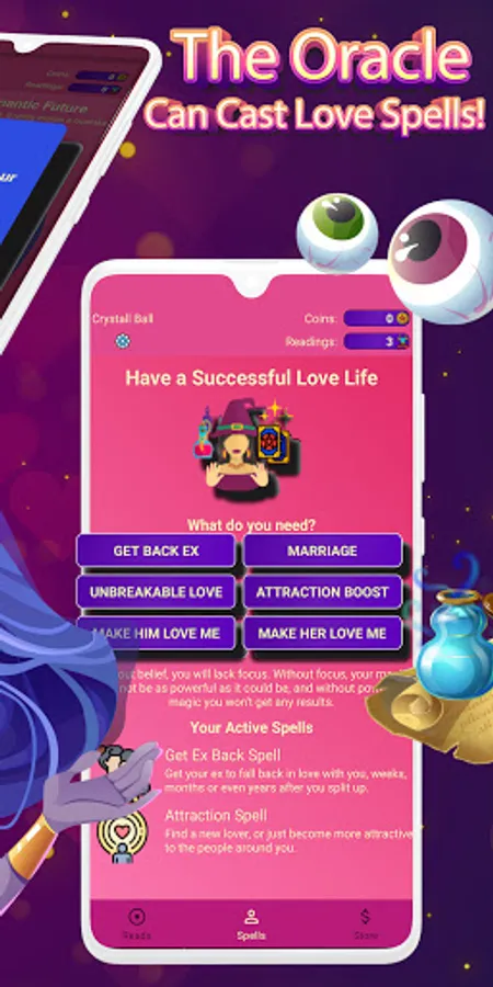 Getting back together with an ex, marriage, achieving unbreakable love with your soul mate, getting and attraction charm or making someone acknowledge you, whatever worries you the most, the Clairvoyant Fortune Telling App will use her magic crystal ball and predict what the future is bringing to you.