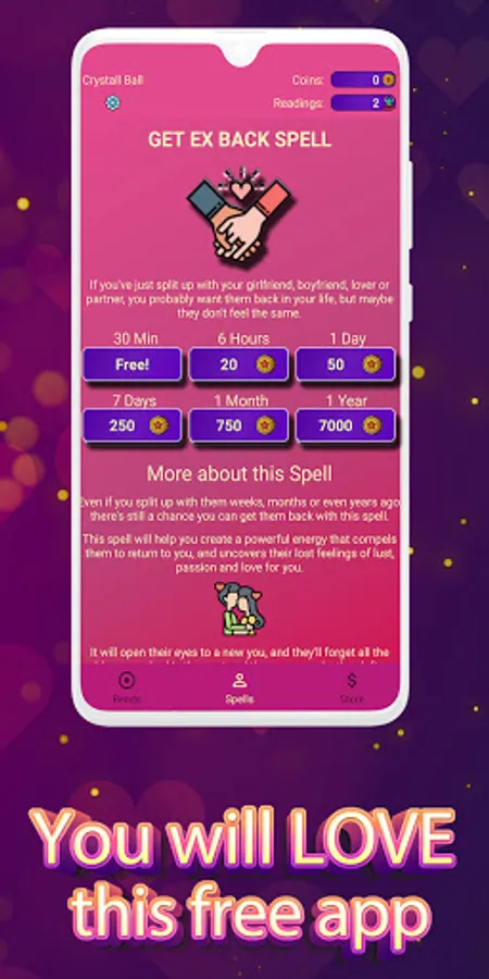 With this app you will be sitting across from your love fortune teller with a crystal ball in between to hear about their predictions about the future of your career or relationships, she will also cast any spell and charm to help you with your daily routine.