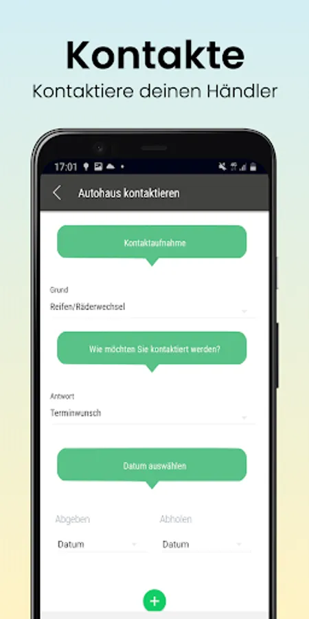 Außerdem erinnert Sie die App an wichtige Termine rund um Ihr Fahrzeug (Garantieende, technische Überprüfungen, usw.) und Sie haben in Notfällen alle wichtigen Kontaktdaten zur Hand. Per „Klick“ rufen Sie Ihr Autohaus an oder schreiben eine E-Mail an Ihren Händler.