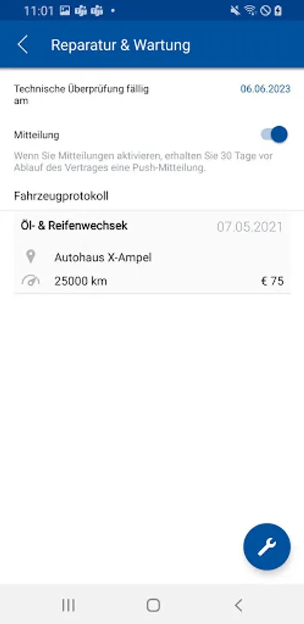 Moreover care4mobility reminds you of important dates relating to your car (end of warranty, technical inspections, etc.) and
