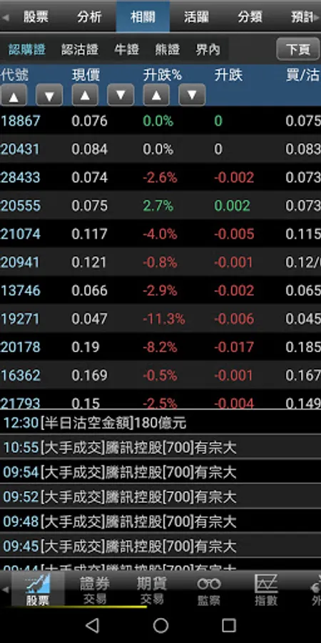 -Top 20 active stocks, warrants, CBBCs;