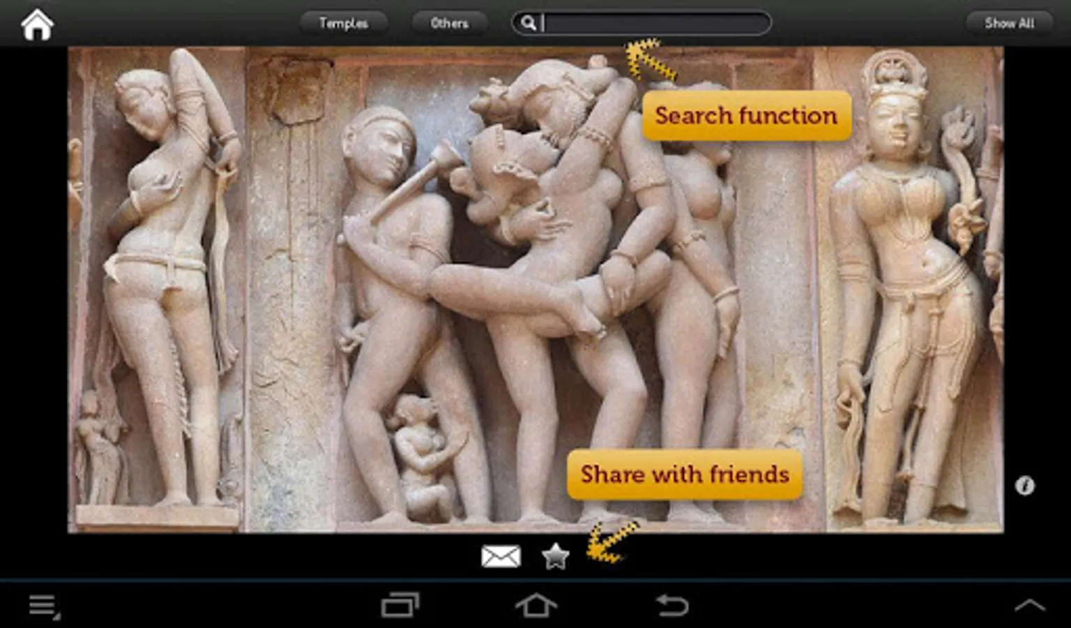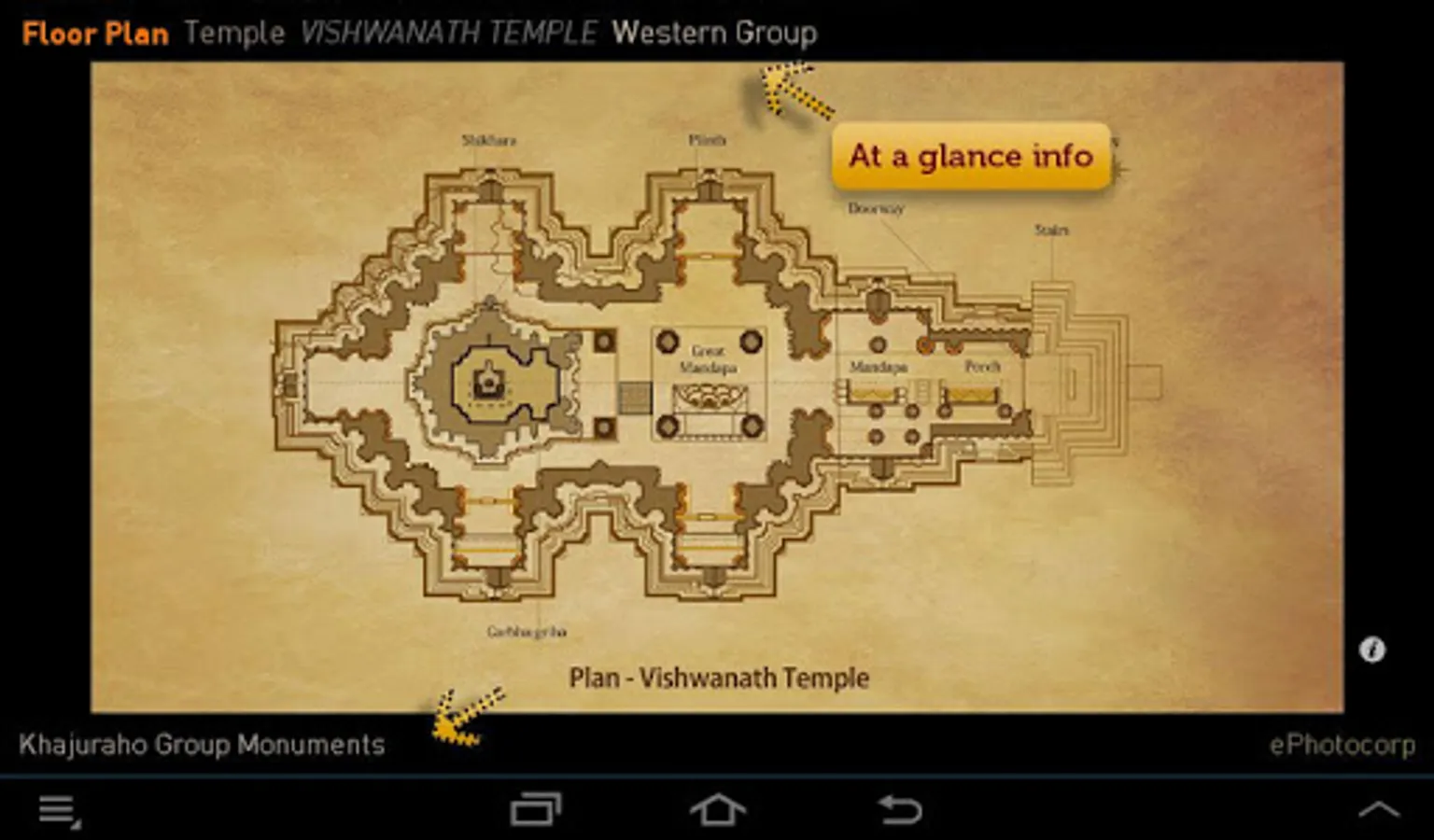 The temples of Khajuraho are a group of Hindu and Jain temples in Madhya Pradesh, India. The temples were built over a period of 100 years between 950-1050 CE by Chandela rulers. Out of the 85 or so temples that were built only 24 are now extant. The earliest temple, Chausath Yogini, constructed circa A.D. 850-900, was the only temple made entirely of Granite. Every other temple at Khajuraho is primarily constructed of sandstone. The stones were put together with mortise and tenon joints and they were held in place by gravity. This form of construction requires very precise joints. These temples are world treasures and Khajuraho is one of the UNESCO World Heritage Sites in India. Sculptures : Many of the temples of Khajuraho are covered in sculptures representing different aspects of life ranging from recreation to religion. They are intricate in detail, artistic and impressive created by artists with vast experience working with sandstone The sculptures found on the temples of Khajuraho are into three categories. Temple interiors have some three dimensional sculptures that does not protrude from anything ( in the round) , deep bas relief-sculptures with three dimensional effect but are not sculpted all around are present on the wall. Thin friezes of sculptures of varying depth are also seen on the platform and some parts of the wall. Categories of Sculptures: Cult Icons : These are usually in the sanctum and three dimensional Surrounding figures : These are seen in prominent places inside temple like Dikpalas Demi Gods : Vidyadharas, gandharvas, ganas on walls Apsaras or Surasundaris : Celestial women are shown in front, back and side views and in various activities on the walls Mithunas : Romantic couples and erotic sculptures General theme : Depict many aspects of Indian life together Animal figures : Vyala, a creature with a lion`s body and the head of different creatures such as a parrot, an elephant, a boar and others. Geometric and floral designs : on ceilings, borders of walls panels and others Ceilings : There are different type of ceilings over the halls in the temples. Samatala ceilings which are flat, ksipta ceilings are thrown in, and sama-ksipta ceilings are a combination in-between. These have decorative elements like lotus petals, floral cusps and different square arrangements. Temple Plan The advanced typical Hindu temple structure consists of five compartments: Entrance porch (ardh-mandapa), Main assembly hall (Mandapa), Ambulatory passage hall, (Maha-Mandapa) ante chamber between shrine and hall (Antarala) and the sanctum (Garbhagriha) These temples with the five compartments with an ambulatory passage around the Sanctum are know as Sandhara Temples. Lakshmana, Vishvanatha, Kandariya Mahadeva and Parshvanath temple are Sandhara temples These temples with the five compartments but without ambulatory passage around the Sanctum are know as Nirandara Temples Khajuraho temples are all built on large tall platforms or jagatis often made of granite. Religion : There are three jain temples at Khajuraho namely Ghantai, Adinātha, and Pārśhvanātha. The rest are Hindu Temples. The sculptures and inscriptions show both Puranic ( worship of Vedas ) and Tantric ( Sexual imagery ) Hinduism. Sexual themes cover about 10% of the temple sculpture. The app is a complete photo journey of all of the temples at Khajuraho with detailed explanation of each photo.