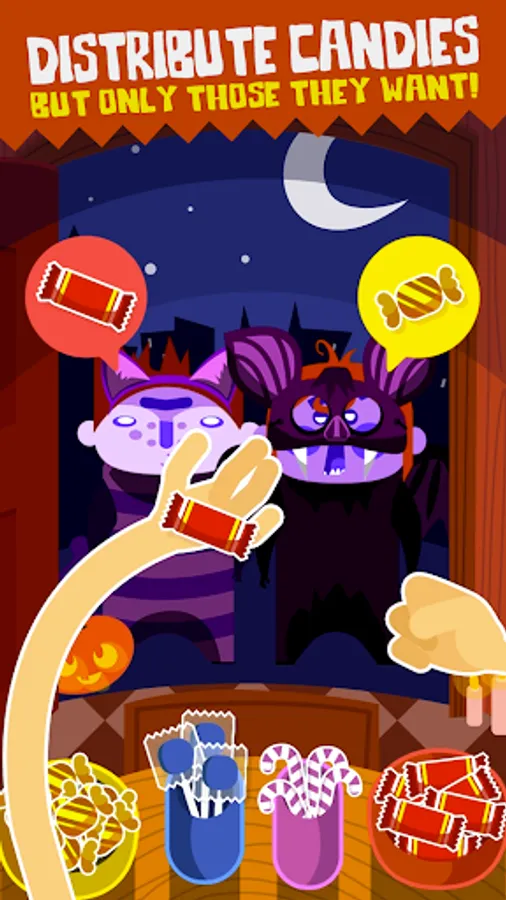 It's Halloween night and the kids are so happy to come knocking at your door to ask you for candies! You're kind of forced to do so, because they won't stop coming to your house! 🎃