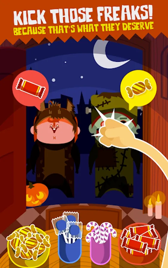 However, some monsters disguised as well may take advantage of the situation to try to steal your treats! But your kind generosity has limits... So offer them slaps and be careful not to confuse them with the neighborhood kiddos...