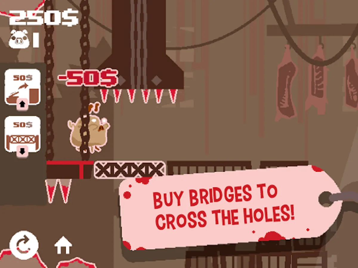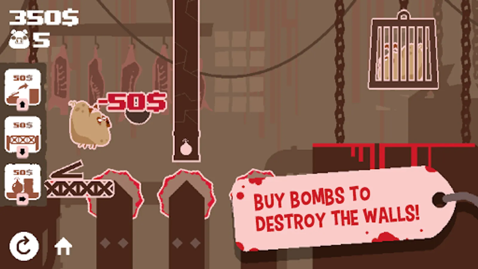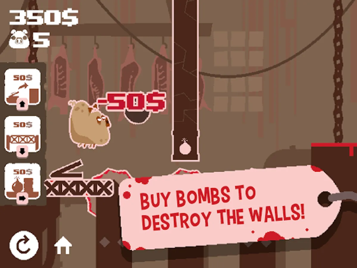 But this world is cruel and the meat trade is very lucrative. You will need to sacrifice your piggy fellows to earn money and buy stuff to build a passage through the many obstacles that will be in your way! 🐷