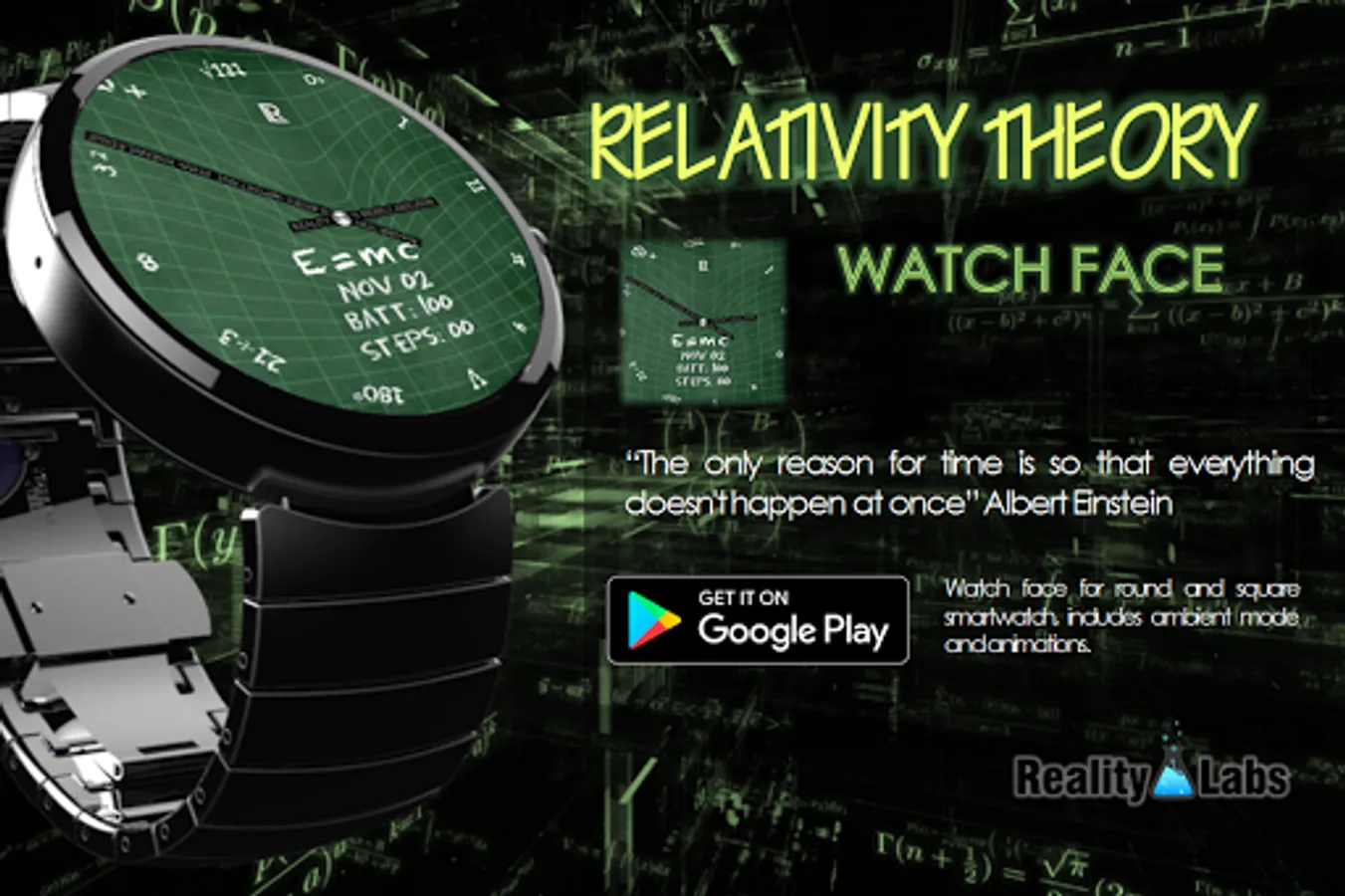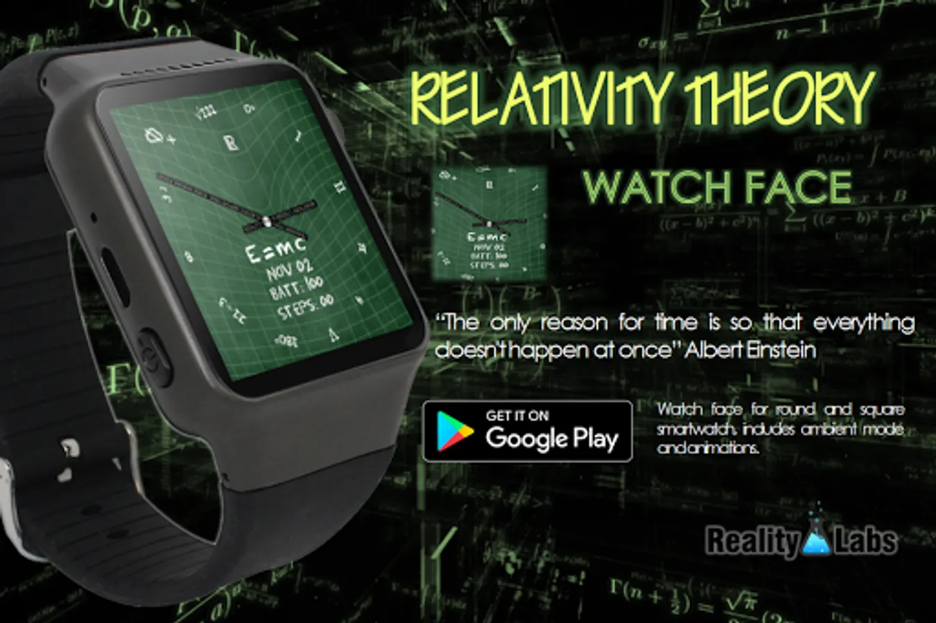 V1.0 Watch face for round and square smartwatch, includes ambient mode and animations.