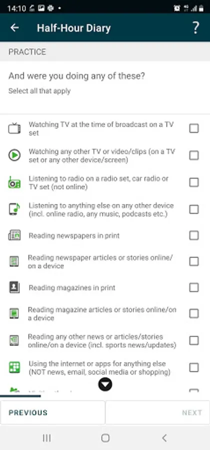 TouchPoints is a market research application that captures study participants' behaviour and usage of different media. We do this by asking participants to complete survey questions every half hour for a 7 day period. When a participant’s device is connected to the internet, their answers and usage information are then sent securely to a remote server for analysis.