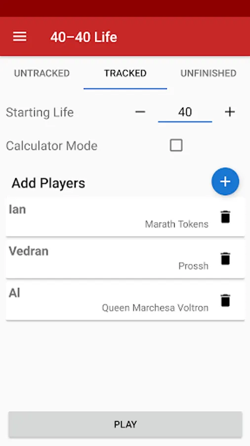 - Commander damage tracking