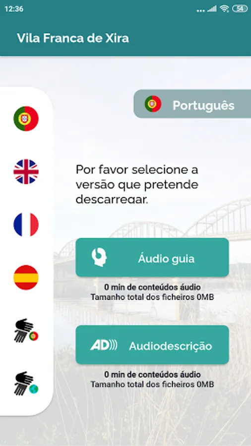 The app includes a multimedia guide with contents in 4 languages: English, Portuguese, French and Spanish.