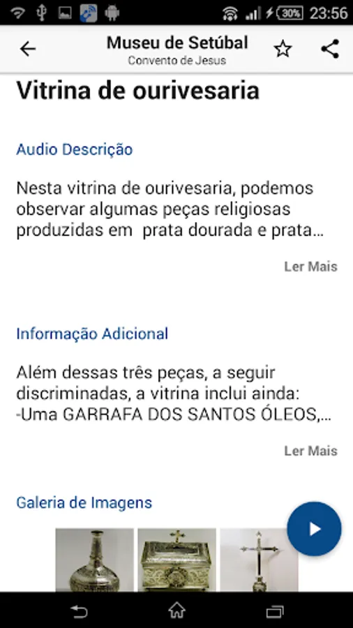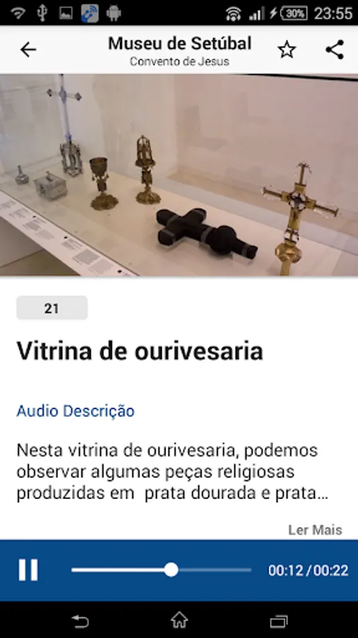 The APP of the Museum of Setúbal / Convent of Jesus offers audio versions with audiodescription, in Portuguese, English and Castilian.