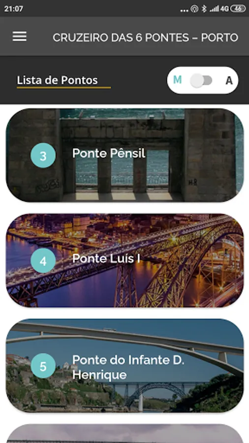 The APP provides an audio guide with content in 6 languages: Portuguese, English, French, Spanish, German and Italian.
