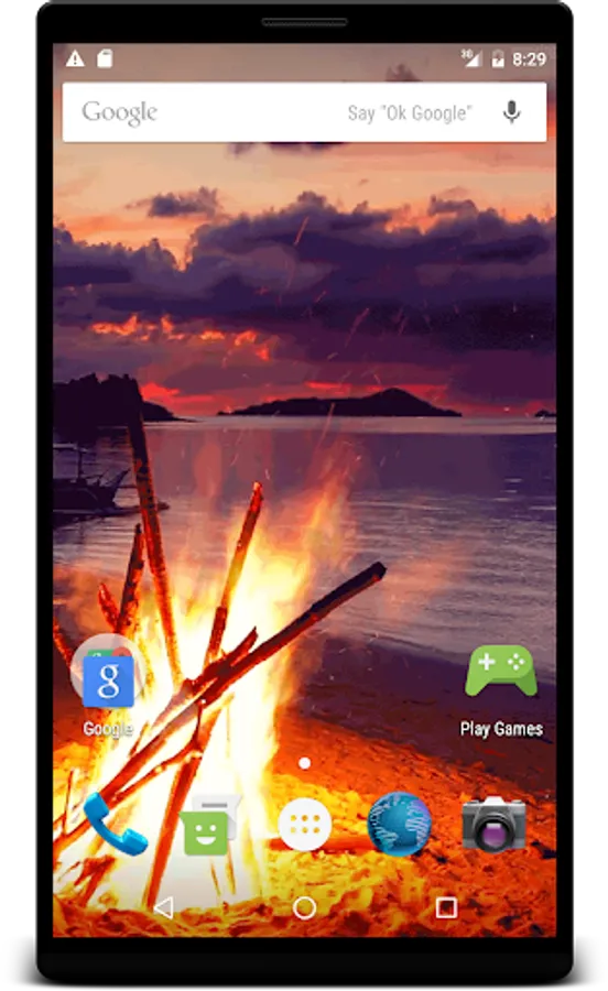 How to use it: press "Home" > long press on background > choose "Live Wallpapers" > select "Bonfire HD Livewallpaper" from list.