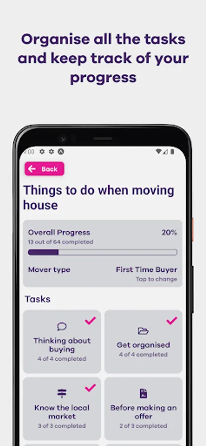 Our Moving Home Checklist app covers everything you need to do when buying a home – from what to look out for when you’re viewing a property to the paperwork you need to change when you’ve moved in. Whether you’re a first time buyer, you’re figuring out how to buy and sell at the same time or you’re renting, there’s a list for you!