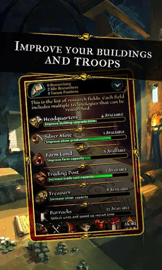 - A completely redesigned village list. The new list contains a ton of useful information, all neatly summarized in icons. Incoming and outgoing troops, silver, food, and more!