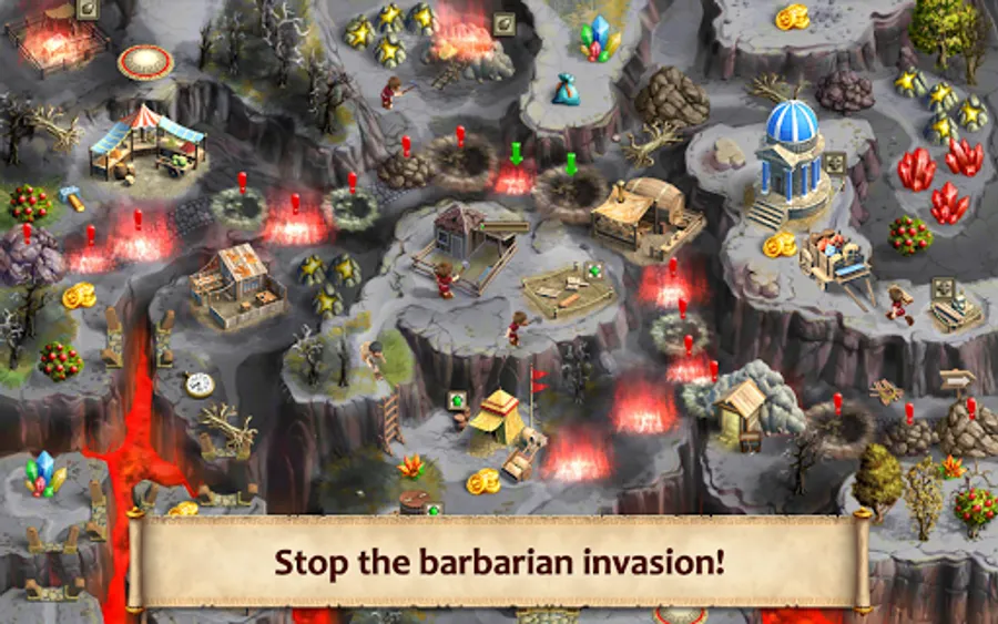The Roman Empire is flourishing, everything seems to be quiet and peaceful. Our well-known characters, Julia and Victorius, are absolutely happy awaiting the birth of their first child, and it looks like there’s nothing threatening the glory of the Great Kingdom. However, one day a messenger arrives in Rome spreading the bad news about Barbarians that are destroying the Roman provinces. No one but Victorius and his army can resist the enemy and protect Rome from the forthcoming disaster. There is nothing else left for Victorius, but to set off on a journey to fight the enemy! Be brave and the good luck won't leave you, clear up your way and build roads, help the Romans get their prosperous and peaceful life back! Restore broken roads and settlements, save the Roman Empire from barbarian invasion!