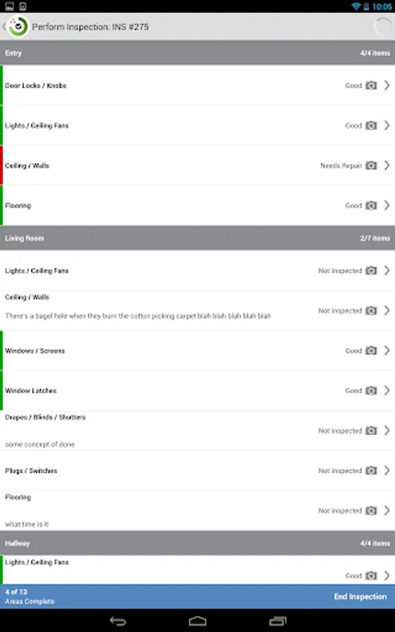 - Finished inspections are automatically sent to your Propertyware account, allowing for easy creation of work orders and printed reports